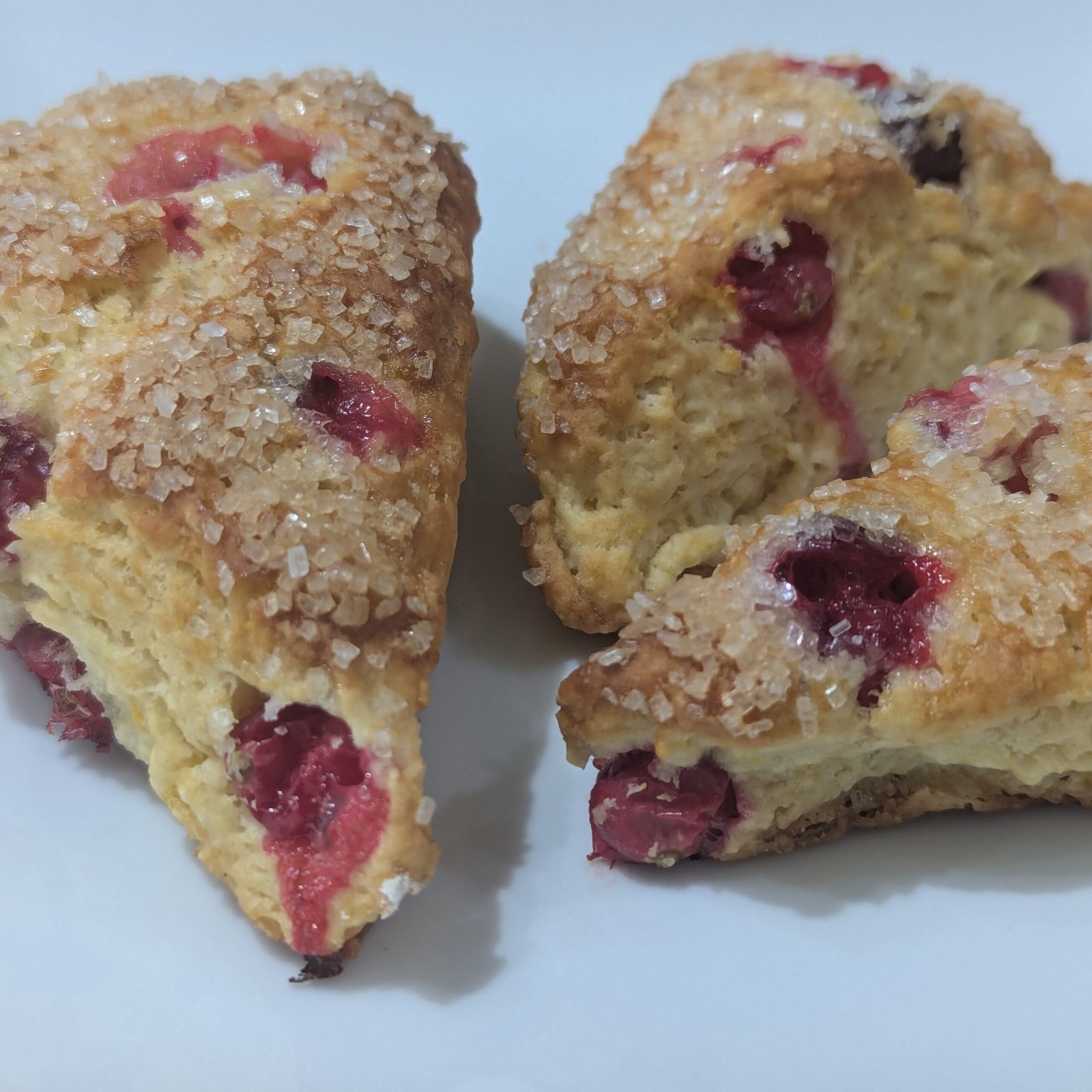 Bleached Enriched Wheat Flour (Niacin, Reduced Iron, Thiamine Mononitrate, Riboflavin, Folic Acid, Enzyme), Milk (Nonft Milk, Vitamin A Palmitate, Vitamin D3), Cranberries, Butter (Cream (Milk), Salt), White Sparkling Sugar (Sugar, Carnuba Wax), Fresh Squeezed Orange Jucie, Baking Powder (Corn Starch, Sodium Bicarbonate, Sodium Aluminum Sulfate, Monocalcium Phosphate)Sugar, Vanilla Extract (Vanilla Bean Extractives in Water, Alcohol (35%)), Orange Extract (Alcohol, Orange Oil), Orange Zest