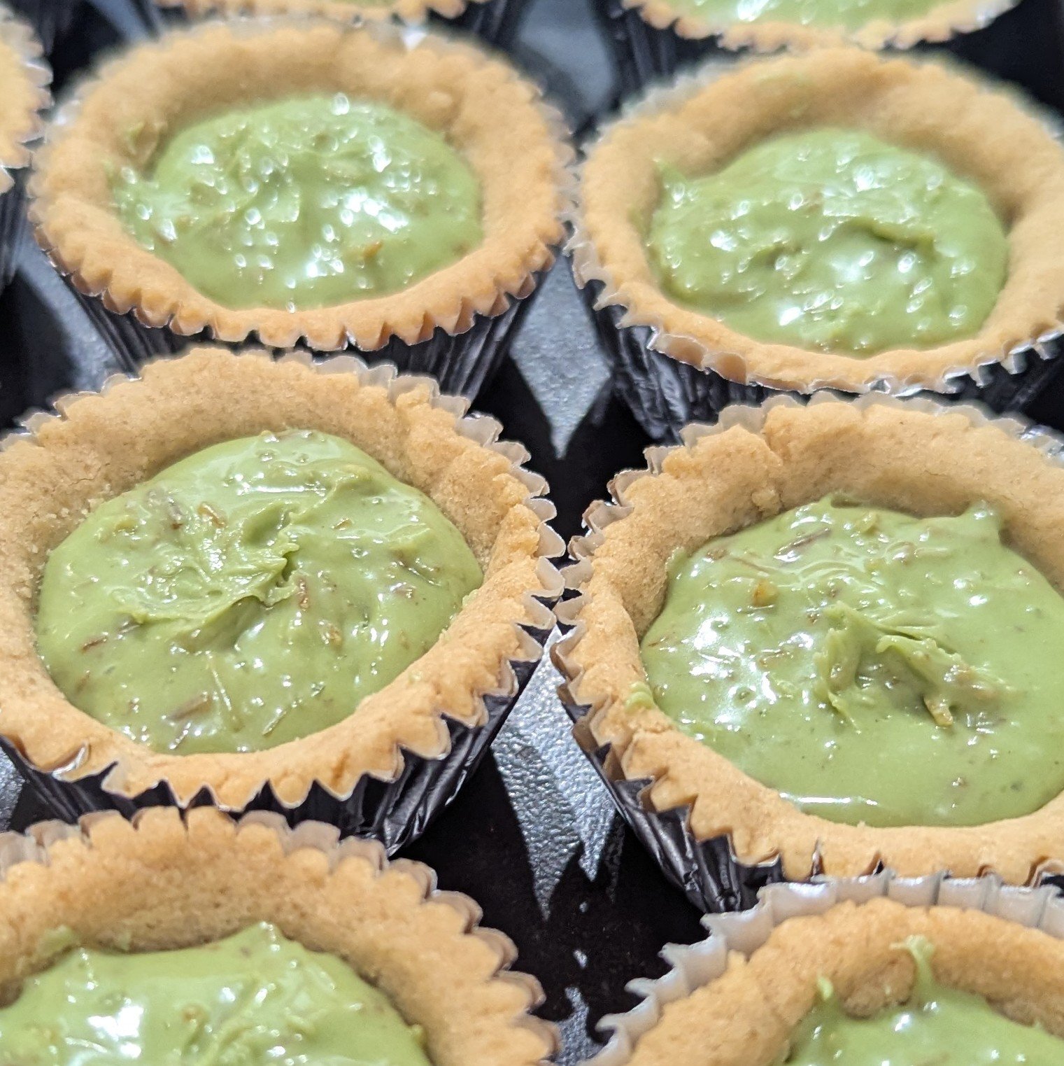 Simple butter based dough, filled with the iconic pistachio kataifi mixture, and topped with a dollop of milk chocolate.