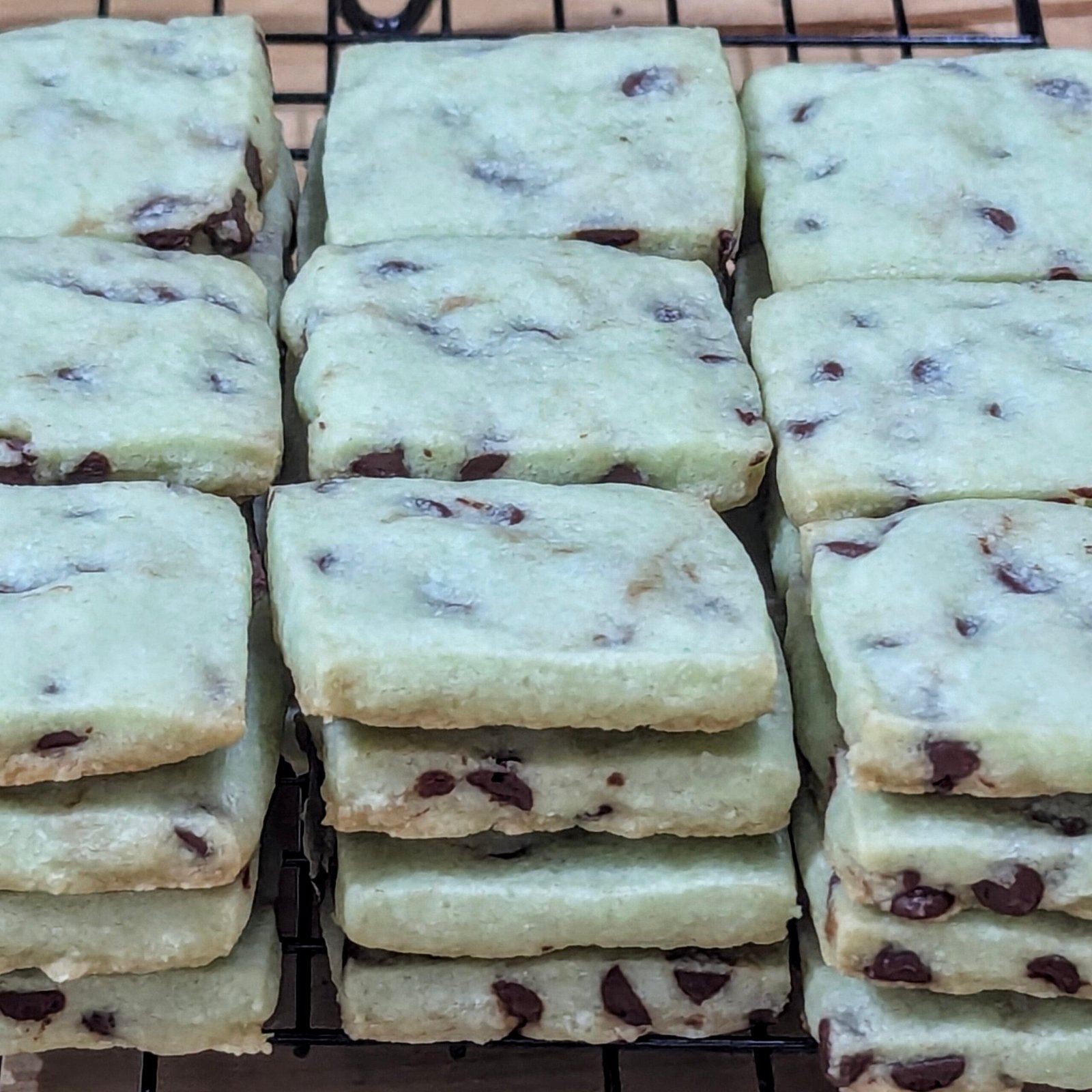 Peppermint Extract and Mini Chocolate Chips in a basic shortbread dough.