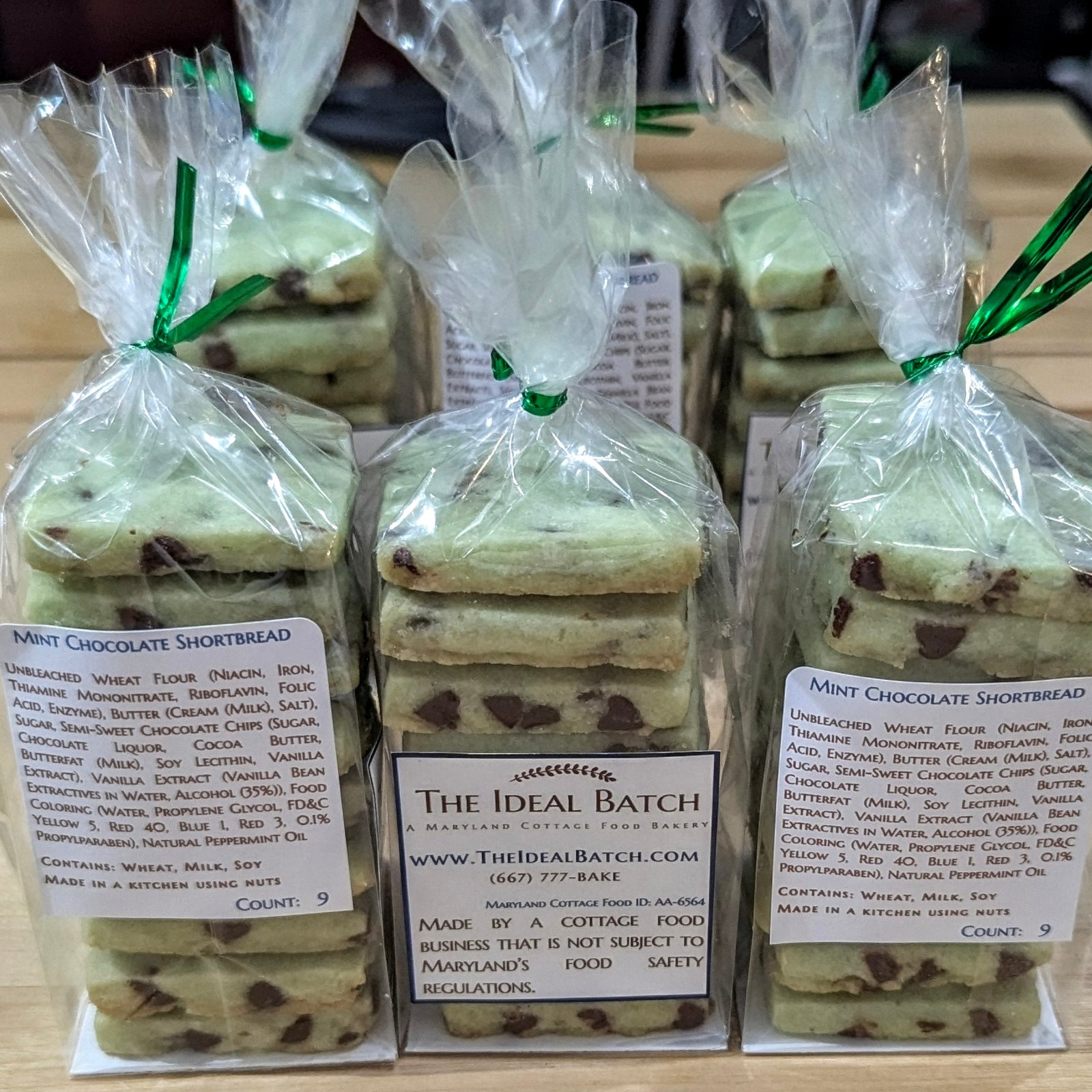 | Ingredients | Unbleached Wheat Flour (Niacin, Iron, Thiamine Mononitrate, Riboflavin, Folic Acid, Enzyme), Butter (Cream (Milk), Salt), Sugar, Semi-Sweet Chocolate Chips (Sugar, Chocolate Liquor, Cocoa Butter, Butterfat (Milk), Soy Lecithin, Vanilla Extract), Vanilla Extract (Vanilla Bean Extractives in Water, Alcohol (35%)), Food Coloring (Water, Propylene Glycol, FD&C Yellow 5, Red 40, Blue 1, Red 3, 0.1% Propylparaben), Natural Peppermint Oil |